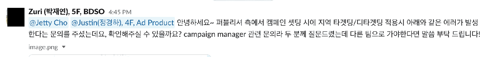 버즈빌의 광고는 여러가지 항목을 타겟팅할 수 있습니다. 특정 나이대의 유저를 타겟팅할수도 있고, 특정 앱에만 광고를 내려줄 수도 있죠. 여러가지 타겟팅 방법 중 하나는 지역 타게팅입니다. 원하는 지역에만 광고를 내려줄 수 있는 기능인데요, 어느 날 이 기능에 결함이 있다는 제보가 들어옵니다.