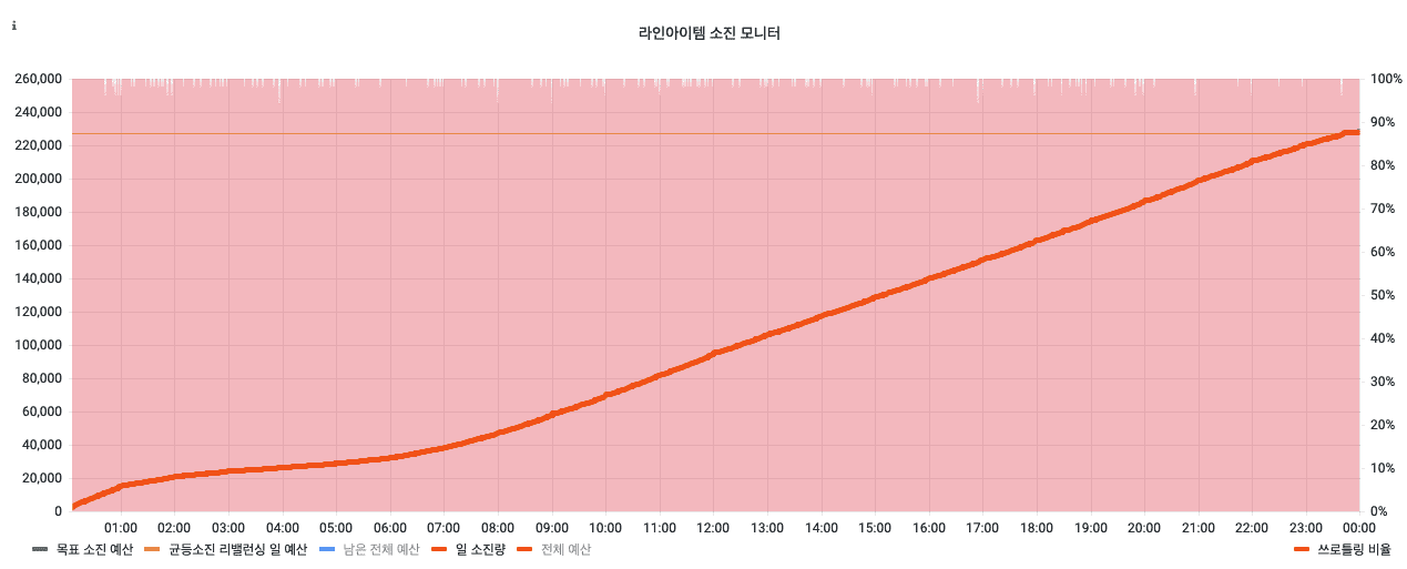 가설을 검증하고 적용하는 일은 그동안 쌓아온 개선이 복리로 돌아와 수월하게 진행할 수 있었습니다. 이전에 여러 소진 패턴의 확장을 고려해 추가한 소진 타입 덕에 새로운 소진 타입을 쉽게 추가할 수 있었고 시뮬레이터에 지연 노출까지 반영할 수 있는 기능을 추가하여 상용 환경 배포 전에 개선과 동작을 확인할 수 있었습니다. 이 일들은 일사천리로 진행되어 구현, 검증 그리고 상용화까지 2일 만에 달성할 수 있었습니다.