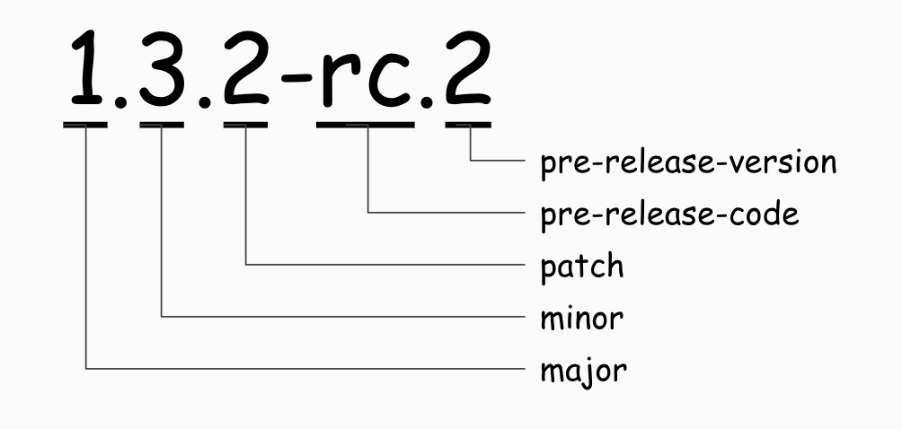 - [Major].[Minor].[Patch]-[Pre Release Code].[Pre Release Version]