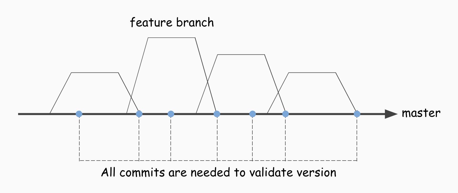 Trunk-Based Development에서는 모든 상태가 배포가 가능한 상태임을 보장해야 한다. 그러기 위해서는 모든 마스터의 커밋이 올바른 버전 상태를 가져야 함을 의미한다.